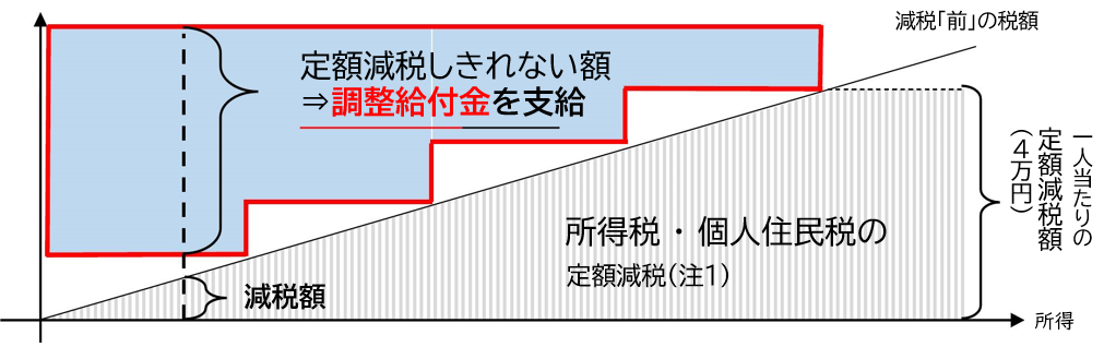 • (注3)所得税及び個人住民税所得割それぞれで定額減税しきれない額を算出し、両者を合算の上、1万円単位に切り上げた額が支給額となります